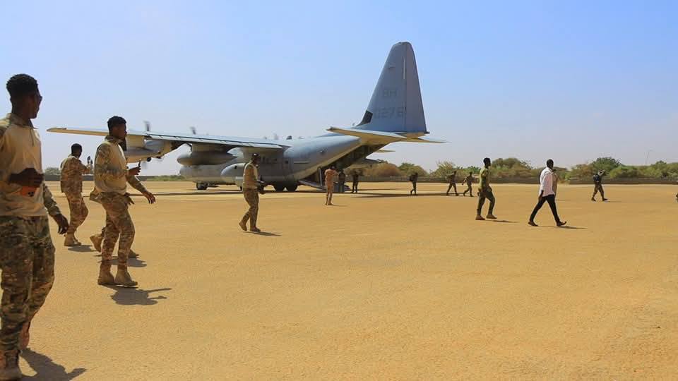 Ciidamada oo la socday diyaarad uu Militariga Mareykanka leeyahay ayaa ka dejisay Garoonka Diyaaradaha Sayid Maxamed Cabdulle Xasan ee Magaalada Kismaayo, waxaana halkaasi ku soo dhaweeyay saraakiil uu ka mid yahay Taliyaha Ururka 162aad ee Guutada 16aad ee Kumaandooska Danab, Laba Xidigle Caarif Hire Salaad.