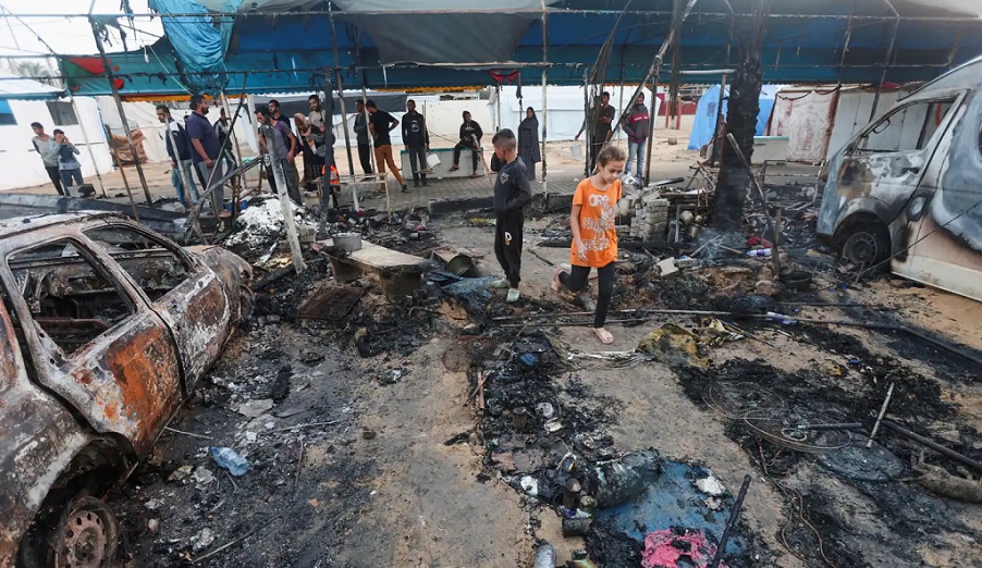 Ugu yaraan afar qof ayaa la xaqiijiyay inay ku dhimatay, in ka badan 40 kalena ay ku dhaawacantay, markii diyaaradaha dagaalka Israel ay duqayn la beegsadeen teendhooyin ay degan yihiin qoysaska barakacayaasha oo ku yaala barxadda Isbitaalka Al-Aqsa ee deegaanka Deir Al-Balah ee bartamaha Marinka Gaza.