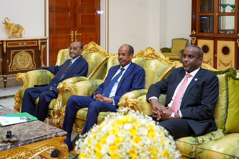 Madaxweynaha Jamhuuriyadda Jabuuti ayaa Madaxweyne Xasan Sheekh Maxamuud ku qaabilay Qasriga Madaxtooyada Qaranka ee Magaalada Djibouti.