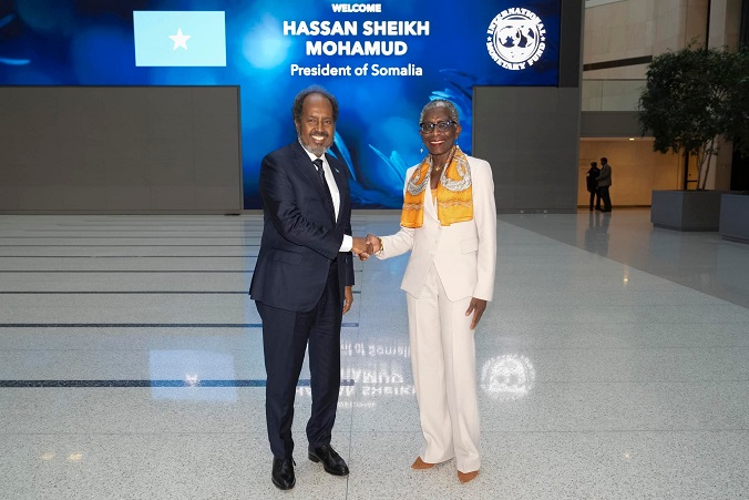 Madaxweynaha Jamhuuriyadda Somaliya, Xasan Sheekh Maxamuud ayaa Magaalada Washington kula kulmay Saraakiil ka tirsan Bankiga Adduunka iyo Hay'adda Lacagta Adduunka ee IMF, saacado uun ka dib, markii ay shaaciyeen in dunidu ay Somaliya ka cafisay lacagtii ay ku lahayd.