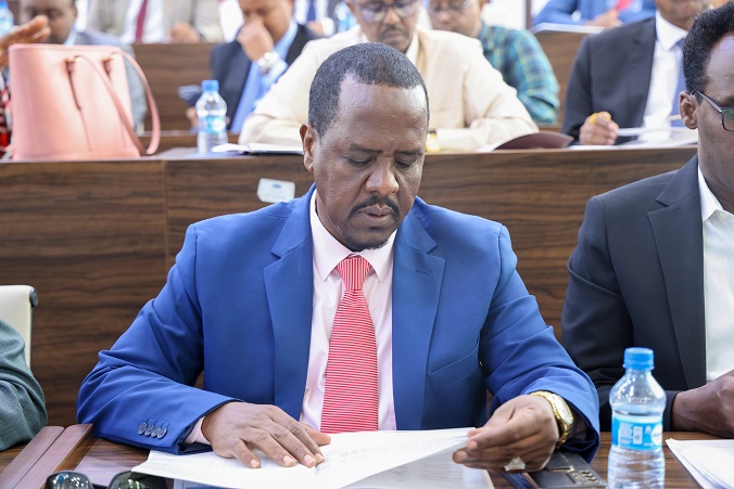 Kulanka oo Gudoomiyaha Golaha Shacabka, Aadan Maxamed Nuur (Aadan Madoobe) uu shir guddoominayay ayuu ajandihiisu ahaa xaaladda fatahaadaha & khasaaraha ka dhashay, qaybtinta warbixinta xisaab xirka sanad maaliyadeedka ku dhammaaday 31-ka December ee 2022 iyo qaybinta qoondada miisaaniyadda ee 2024.