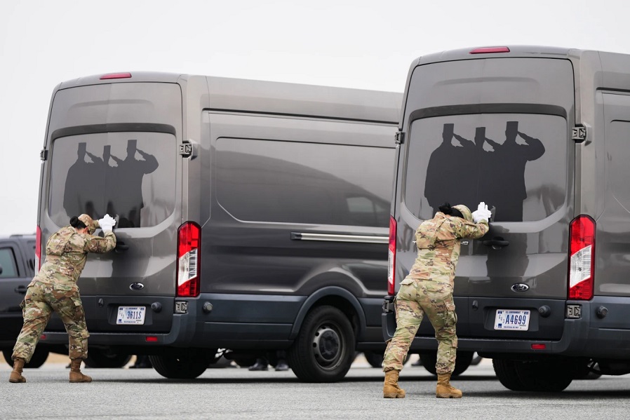 Garoonka ayaa waxaa ku sugnaa qoysaska askarta meydadkooda dalka lagu soo celiyay oo tiradooda lagu sheegay lix askari, iyadoona Madaxweyne Donald Trump, Madaxweyne Kuxigeenka JD Vance iyo masuuliyiin kale ay goobjoog ka ahaayeen munaasabadda lagu soo wareejiyay meydadka askarta. Mareykanka ayaa munaasabad sharafeed wareejin ah u sameeya, marka askarta lagu dilo meel ka baxsan dalkaasi. Wareejin sharafeedka waa kolka meydadka askarta lagu soo celiyo gudaha Mareykanka.