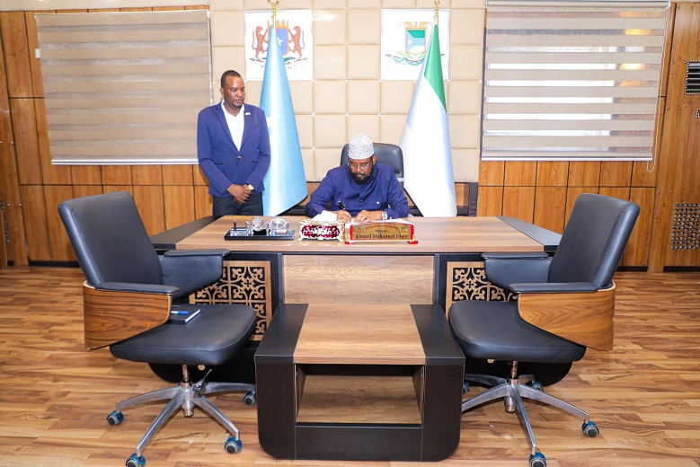 Madaxweynaha Jubbaland, Axmed Maxamed Islaam (Axmed Madoobe) ayaa caawa saxiixay illaa sharci oo kol hore ka soo gudbay Baarlamaanka Jubbaland, ka dib markii Xildhibaanadu ay meelmariyeen.