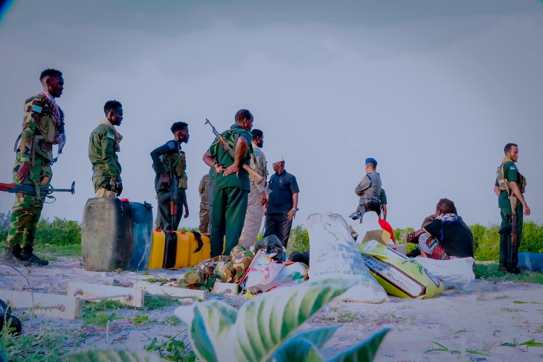 Taliyaha ayaa tilmaamay in ay gacanta ku soo dhigeen afar nin, laba kalena sida uu sheegay ay baxsad ku maqan yihiin, kuwaa oo sida uu yiri ku howlanaa dhibaateynta maraakiibta iyo doomaha ganacsiga, gaar ahaan kuwooda adeegsada xeebaha Jubbaland.