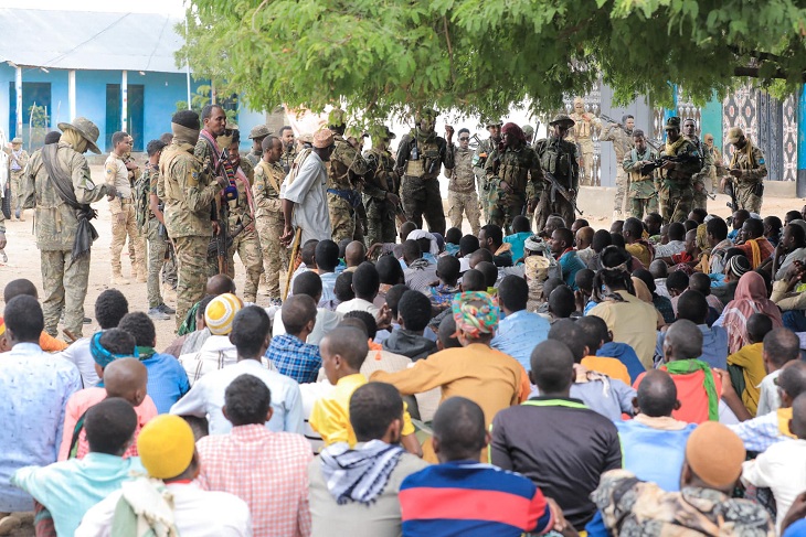 Saraakiisha hawlgalka hoggaamineysay oo goob fagaare ah kula hadlay dadka deegaanka ayaa u sheegay inaanay iyagu u socon, cidda dagaalka kula jiraana ay Shabaab tahay. Saraakiisha ayaa reer Xagar ka codsaday in ay la shaqeeyaan, si amniga gacan bir ah loogu qabto.