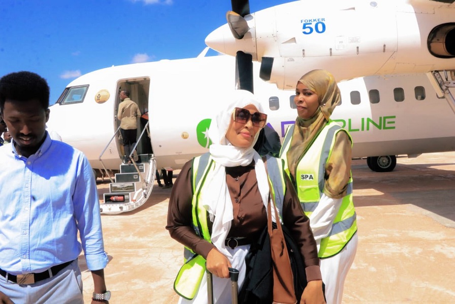 Wasiirka Amniga Galmudug, Aadan Warsame Cilmi (Deeq Gargareeto) ayaa wafdiga Gudoomiyaha Hay’adda Batroolka Qaranka ku soo dhaweeyay Garoonka Diyaaradaha Ushaka ee koonfurta Gaalkacyo.