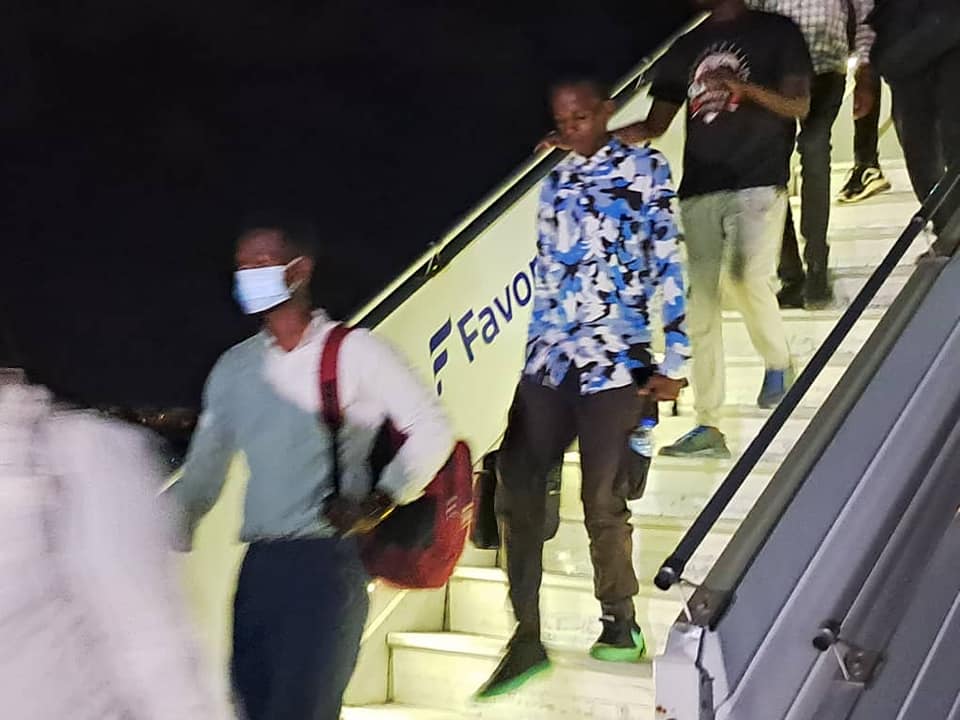 Masuuliyiin uu ka mid yahay Wasiirka Arrimaha Dibadda ee Xukuumadda Federaalka, Abshir Cumar Jaamac (Huruuse) ayaa muwaadiniintan ku soo dhaweeyay Garoonka Aadan Cadde.