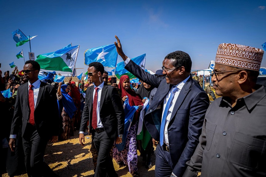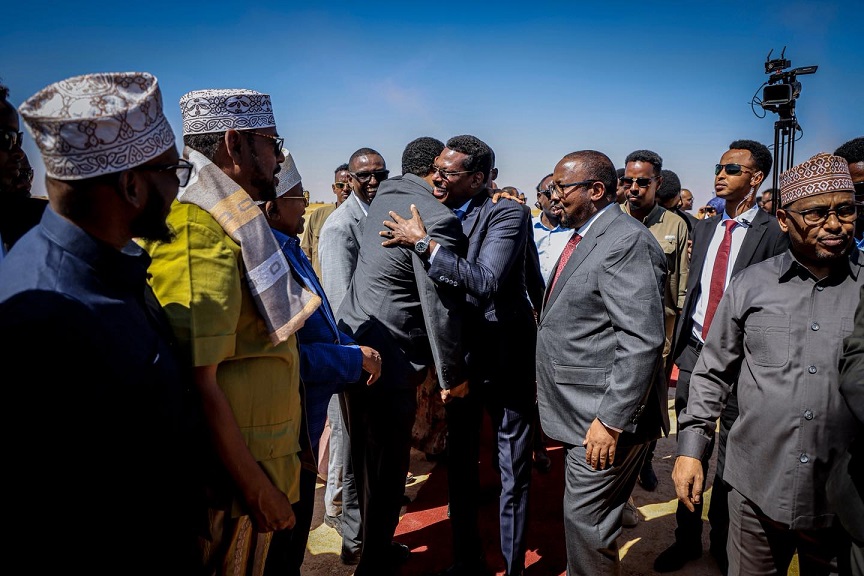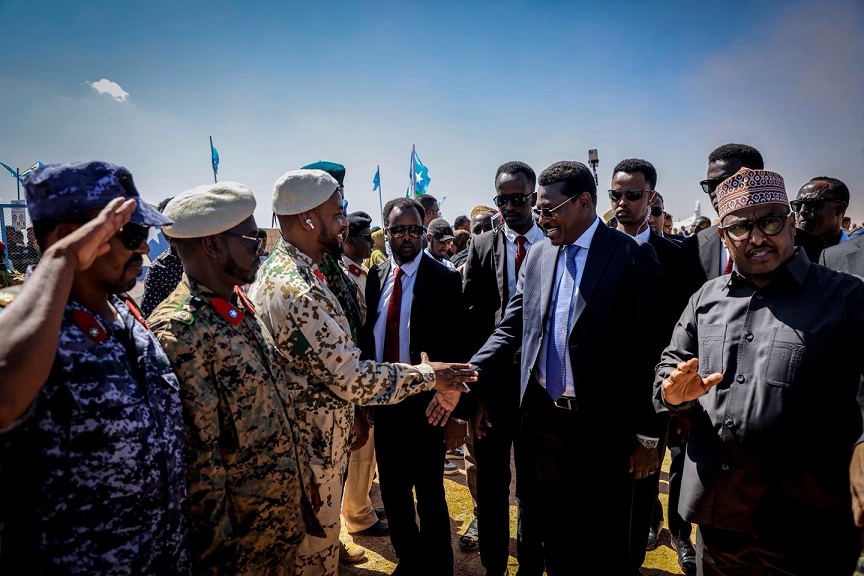 Qoorqoor iyo masuuliyiin kale oo ay ku jiraan Madaxda Dowladda Federaalka ayaa Laascaanood kaga qaybgelaya caleemo-saarka Madaxweyne Firdhiye.