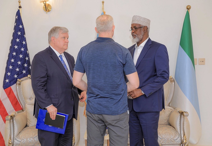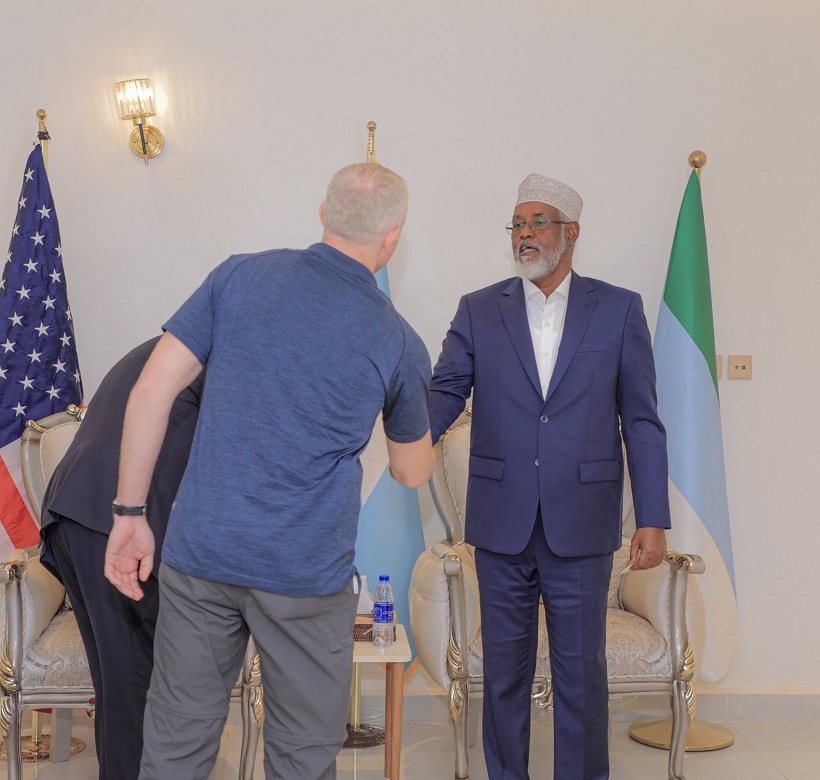 Madaxweynaha Jubbaland, Axmed Maxamed Islaam (Axmed Madoobe) ayaa maanta Magaalada Kismaayo ku qaabilay Safiirka Mareykanka ee Somaliya, Richard H. Riley iyo wafdi uu hoggaaminayo oo gaaray magaaladaasi.