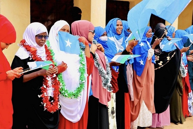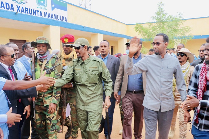 Maamulka degmada iyo qaybaha kala duwan ee bulshada ayaa la arkayay, iyagoo ku soo dhaweynaya xarunta degmada.