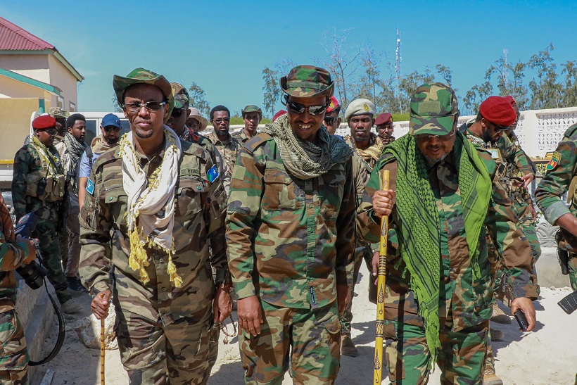 Madaxweyne Xasan Sheekh ayaa sida hadda muuqata, waxa uu tuutaha militariga u xirtay, sidii uu u xoojin lahaa gulufka lagu soo afjarayo Shabaabka Hirshabelle.