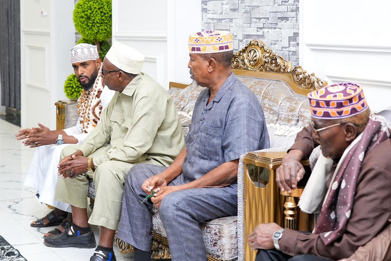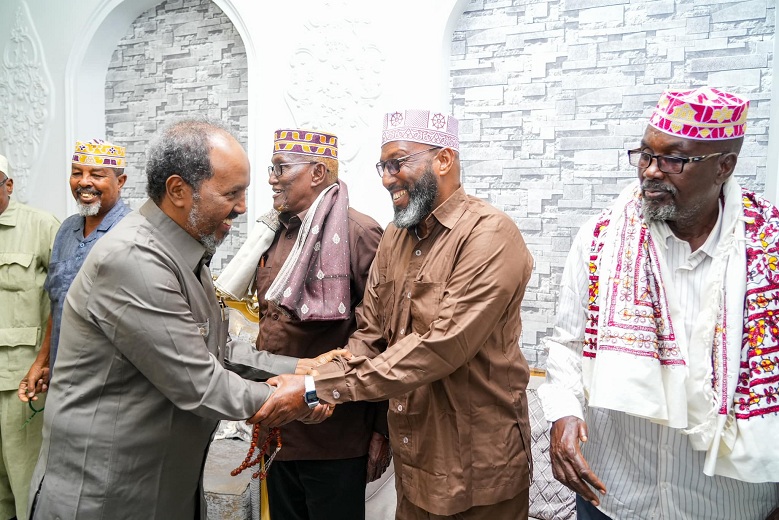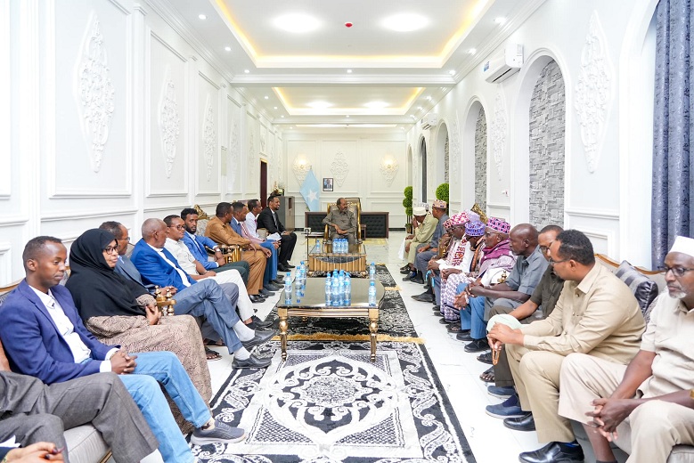 "Madaxweynaha ayaa dhaqanka, siyaasiyiinta iyo masuuliyiinta uu la kulmay kala hadlay, sidii ay uga qayb qaadan lahaaayeen, halganka dib loogu xoreynayo deegaanada ay argagixisadu kaga dhuumaaleysaneyso Galmudug, si dhibaatooyinka nololeed, amni iyo horumar la’aan looga dulqaado shacabka ay muddada dheer afduubka u haystaan." Ayaa lagu yiri qoraal caawa ka soo baxay Xafiiska Madaxweynaha Dowladda Federaalka.