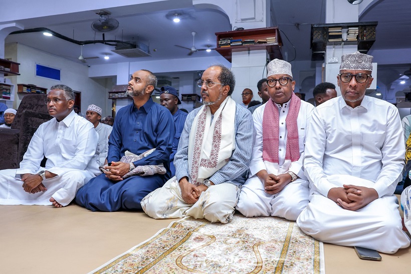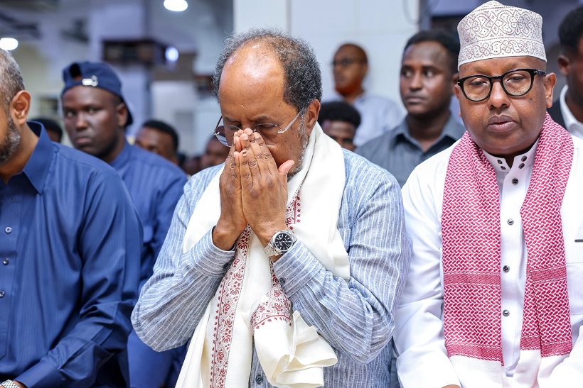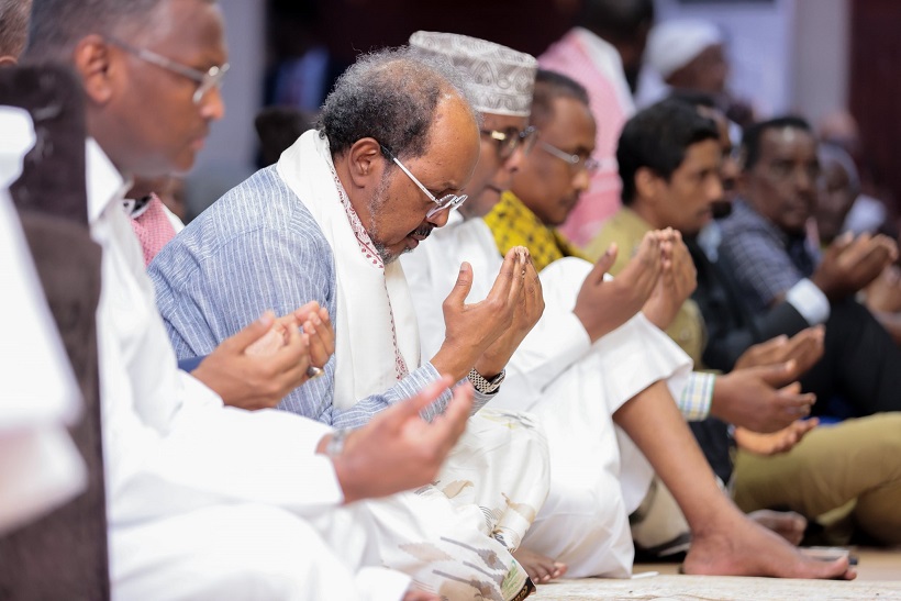 Madaxweyne Xasan Sheekh oo Salaadda Jimcaha ku tukaday Suuqa Bakaaraha