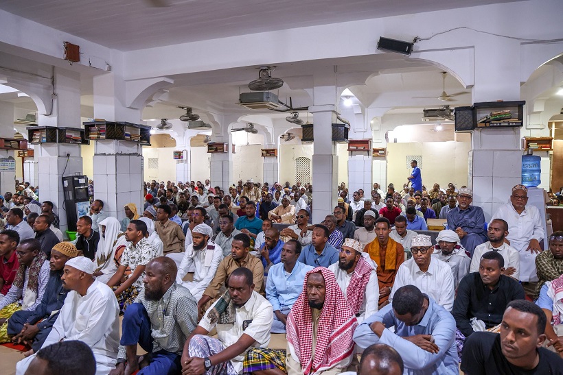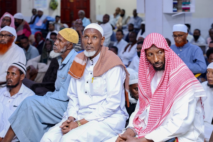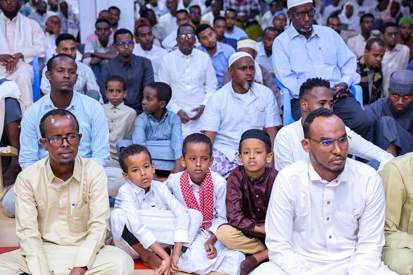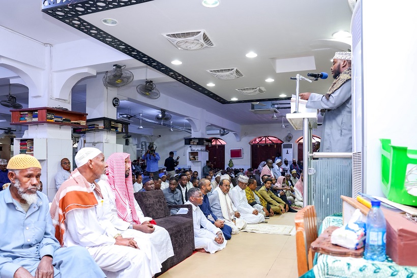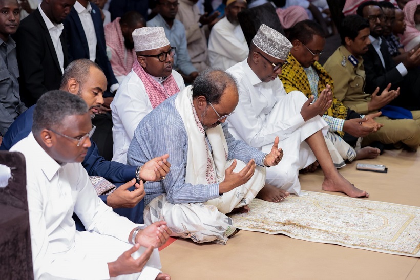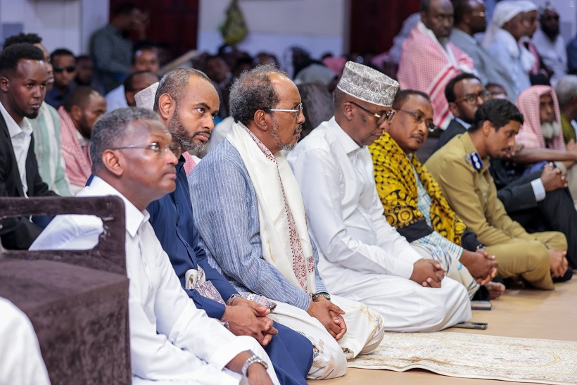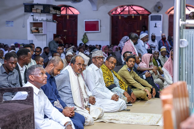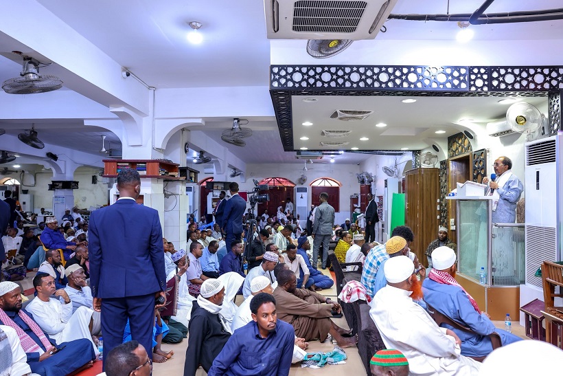 Madaxweynaha oo ay la socdeen qaar ka mid ah Golaha Wasiirada ee Xukuumadda Federaalka, Agaasimaha Hay'adda Nabad Sugidda & Sirdoonka Qaranka (NISA), Mahad Maxamed Salaad, Taliyaha Ciidanka Booliska Soomaaliyeed, General Asad Cismaan Cabdullaahi iyo Gudoomiyaha Maamulka Gobolka Banaadir ahna Duqa Magaalada Muqdisho, Xasan Xuseen Maxamed (Muungaab) ayaa ku gaaray, iyadoo khudbadda Jimcaha ay socoto.