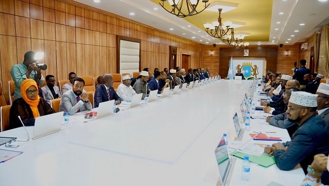 Warka ayaa lagu sheegay "Sidoo kale Madaxweyne Xasan Sheekh ayaa golaha ku dhiirageliyay dadaaladda ay ku bixinayaan dib-u-dhiska dalka, horumarinta kaabeyaasha dhaqaalaha, dhameystirka xeerarka muhiimka u ah dowlad dhiska iyo guud ahaan horumarka dalkeenna."