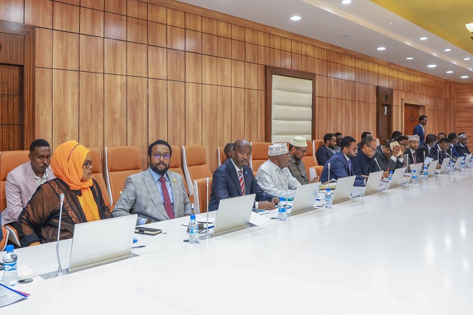 Madaxweynaha Jamhuuriyadda Somaliya, Xasan Sheekh Maxamuud ayaa maanta shir guddoomiyay Shirka Khamiislaha ee Golaha Wasiirada.