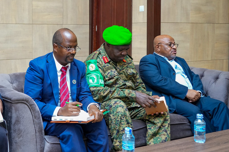 Madaxweynaha ayaa qaabilay Wakiilka Midowga Afrika ee dalka ahna Madaxa Ciidanka Nabad Ilaalinta ee Hawlgalka ATMIS, Danjire Mohamed El-Amine Souef iyo Taliyaha Ciidanka ATMIS, General Sam Okiding.
