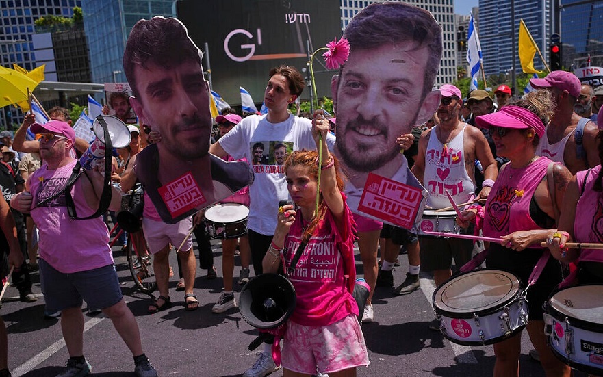 Magaalada ugu weyn Israel ee Tel Aviv ayaa waxaa caawa isugu soo baxay dad lagu qiyaasay 300,000 oo qof, waana mudaaharaadkii ugu weynaa ee ka dhaca Israel, tan iyo bishii September ee sanadkii 2024. Shacabka Israel ayaa ka carooday lix maxbuus oo 31-kii bishii August ee sanadkaasi la sheegay in lagu dilay deegaanka Rafah ee koonfurta Marinka Gaza, xilli ciidamadu ay isku dayayeen in dadkaasi ay xoog ku soo furtaan.
