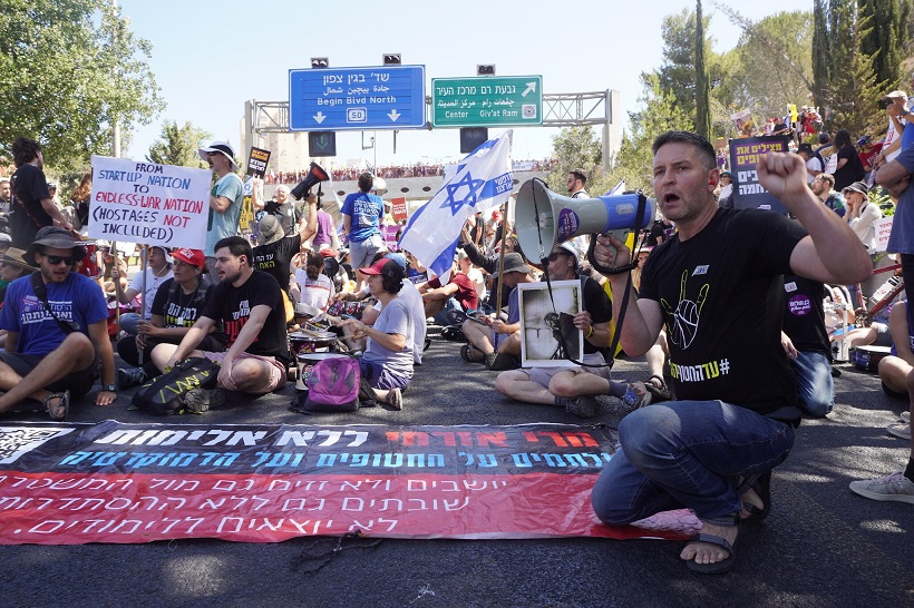 "Waxaan kala xiraynaa dalka oo dhan, sababtoo ah la haysteyaasha ma ahan kuwo ay dowladdu u hureyso in la joojiyo dagaalka. Waa muwaadiniin ay tahay in dowladdu ay u ogolaato inay qoysaskooda dib ula midoobaan." Ayuu yiri Hoggaamiyaha Mucaaradka Israel oo hadalkiisa ku xoojiyay "Nama joojin doonaan, namana daalin doonaan. Waan sii wadaynaa dagaalka, illaa la haysteyaasha ay guryahooda ku soo laabtaan. Waxaa jiraya heshiis, dagaalkana wuu dhammaanayaa."