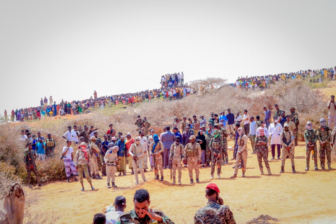 Maxamed Aadan Isaaq ayaa waxaa lagu toogtay fagaare ku yaala duleedka Baraawe, halkaas oo dadweyne fara-badan ay isugu soo baxeen, si ay u daawadaan qaabka loo tooganayo ninkaasi.