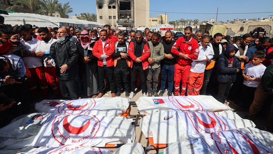 Gideon Sa’ar, Wasiirka Arrimaha Dibadda Israel ayaa sheegay in ciidamadooda aysan samayn wax khalad ah, isla-markaana ay ka shakiyeen gaadiid ambulance oo shaqaalahaasi ay la socdeen, dibna ay ka ogaadeen in dadka la dilay ay sagaal ka mid ah ahaayeen Xoogaga Xamaas iyo Islamic Jihaad, isagoo aan wax caddeyn ah soo bandhigin.