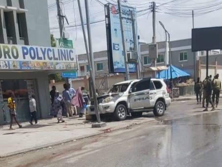 Shaqaalaha Gaadiidka Gurmadka Degdegga ayaa goobta ka qaaday dhaawaca laba qof oo midi uu yahay Sarkaalka la bartilmaameedsaday.