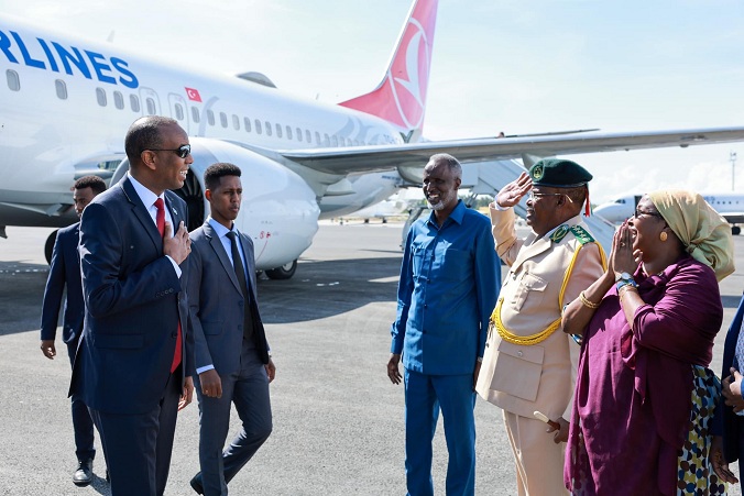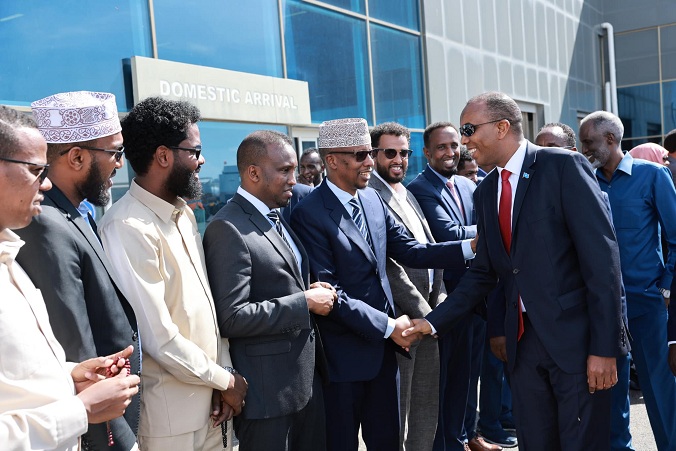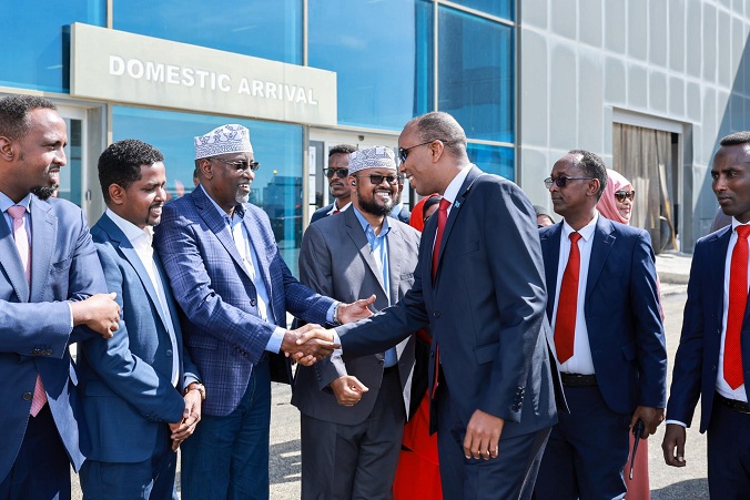 Raysal Wasaaraha iyo wafdigiisa ayaa waxaa Garoonka Diyaaradaha Aadan Cadde ee Magaalada Muqdisho ku soo dhaweeyay xubno ka tirsan Labada Aqal ee Baarlamaanka Federaalka, Golaha Wasiirada iyo bulshada qaybaheeda kala duwan.