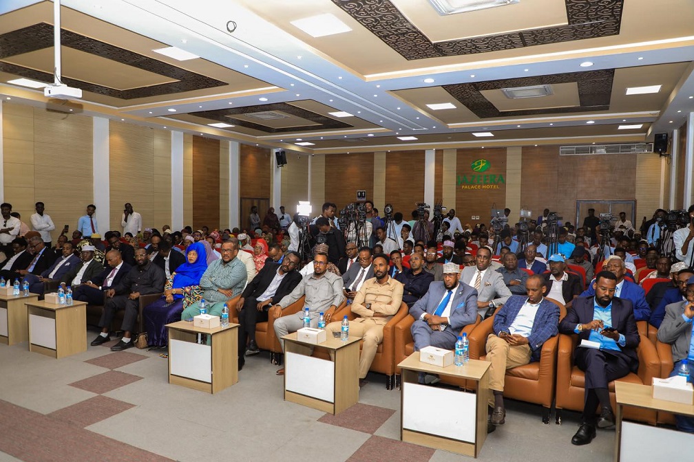 "Waxaan rabaa halkaas inaan ku darsado ciidanku waa inuu yaqaano wixii loo abuuray. Waxaa loo abuuray cadowga maanta taagan ee Al Shabaab iyo Al Qaacidda inay la diriraan waaye. Inay dad khasbaan oo doorasho u dareeriyaan, inay madax dhibaateeyaan iyo inay shacab dilaan looguma talagelin, qof kasta oo dulmi ka shaqeeyana maalinaa la xisaabin doonnaa, Ilaahay idiinkiis." Ayuu yiri Shariif Sheekh Axmed.