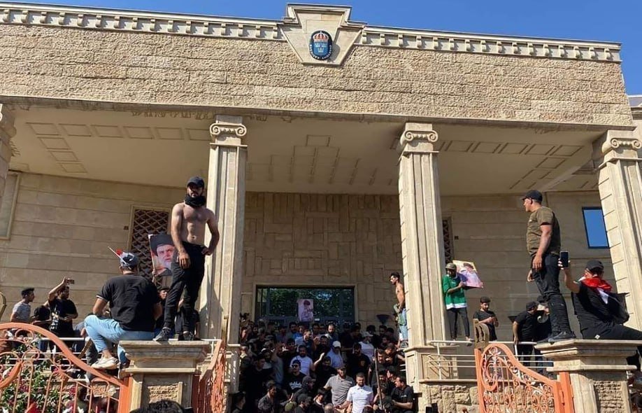Taageereyaasha Muqtada al-Sadr ayaa xoog ku galay Safaaradda, dabna qabadsiiyay, ka dib markii Booliska Sweden ay bixiyeen ogolaansho kale oo lagu gubayo Kitaabka Quraanka Kariimka iyo Calanka Iraq.