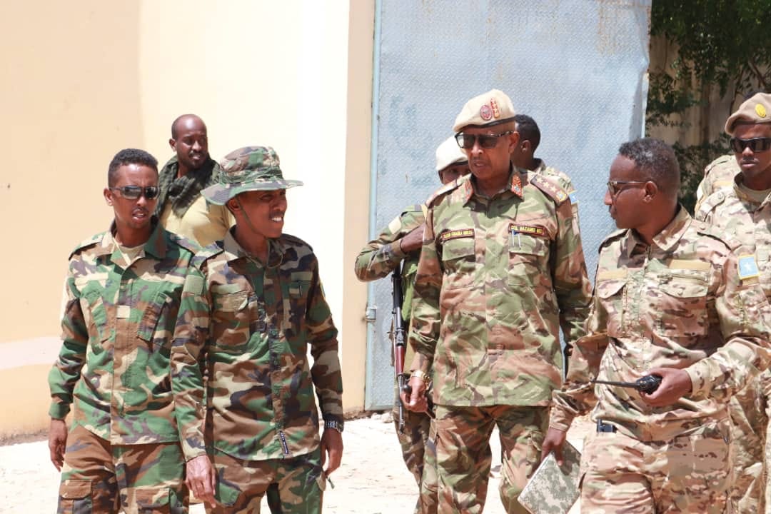 Taliyaha Ciidanka Xoogga Dalka iyo Saraakiishii kale ee la socotay ayaa kormeeray fariisimaha ciidamada ku leeyihiin degmadaasi.