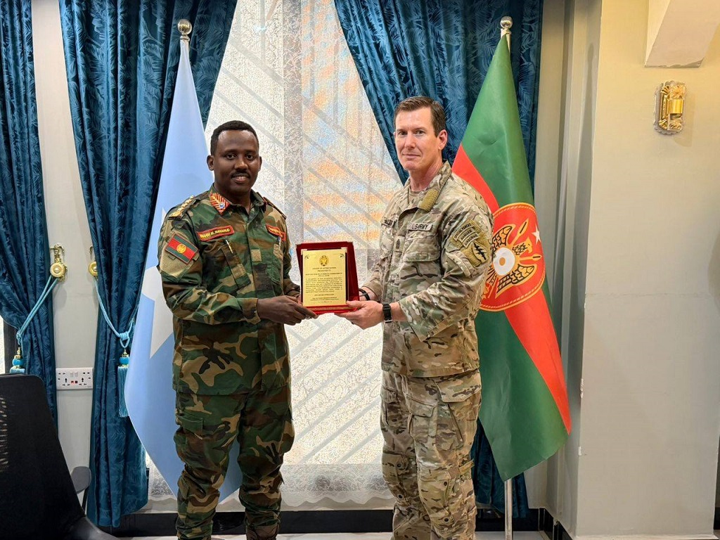 Taliyaha Ciidanka Xoogga Dalka, General Ibraahim Maxamed Maxamuud oo uu wehliyo Taliyaha Ciidanka Dhulka, General Sahal Cabdullaahi Cumar ayaa maanta ka qaybgalay munaasabad lagu sagootinayay Saraakiisha Mareykanka ee dalka ka hawlgala ee dhameystay waqtiga hawlgalkooda, laguna soo dhaweynayay saraakiisha kale ee Dowladda Mareykanka ku soo bedeshay.