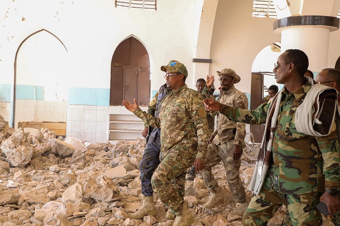 Dhanka kale Madaxweyne Cali Guudlaawe ayaa kormeeray Masaajidka Daaru-nimca, oo 30-kii bishii June ay Shabaabku qarax ku burburiyeen.