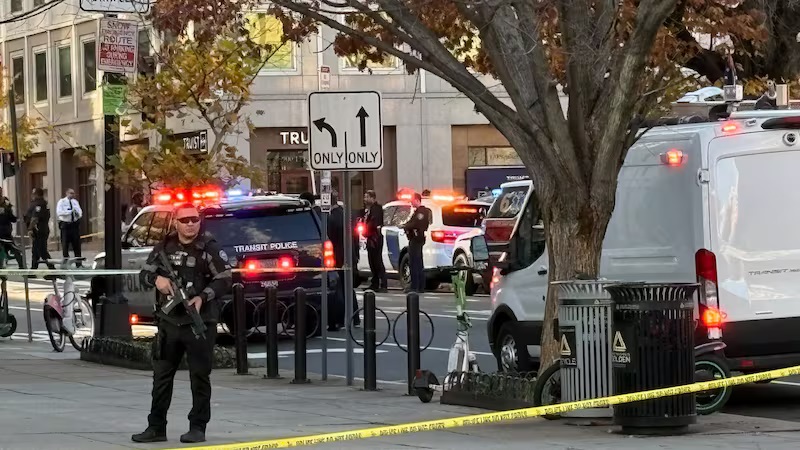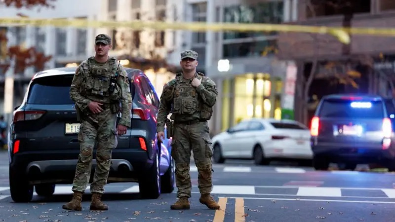Ugu yaraan laba ka mid ah Ciidanka Ilaalada Qaranka ayaa ku dhaawacmay toogasho galabnimadii Arbacada ka dhacday meel aan sidaasi uga fogeyn Aqalka Cad ee Mareykanka ee Magaalada Washington DC.