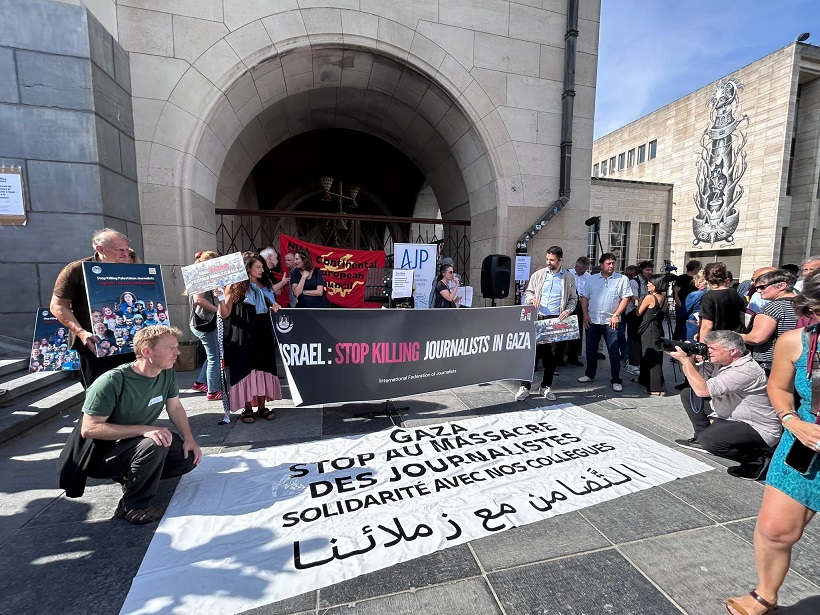 Saxafiyiinta ayaa bannaanbaxan ka dhigay dalkaasi Belgium, si ay dunida ugu tusaan in Israel ay si gaar ahi u bartilmaameedsaneyso Wariyeyaasha ka soo waramaya xaaladda cakiran ee ka jirta dhulka ay macluusha ku sii baaheyso, isla-markaana ay Tel Aviv diidan tahay in wax laga qabto.