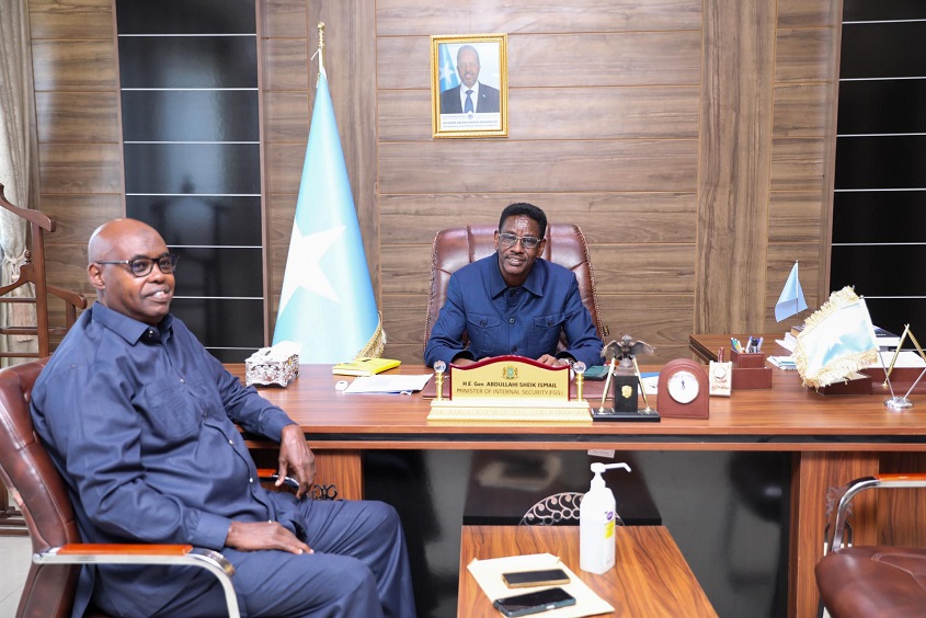 Wasiirka Amniga Somaliya, General Cabdullaahi Sheekh Ismaaciil Fartaag ayaa maanta Xafiiskiisa Magaalada Muqdisho ku qaabilay Wasiirka Amniga Galmudug, Aadan Warsame Cilmi (Deeq Gargareeto) oo booqasho ku yimid caasimadda.