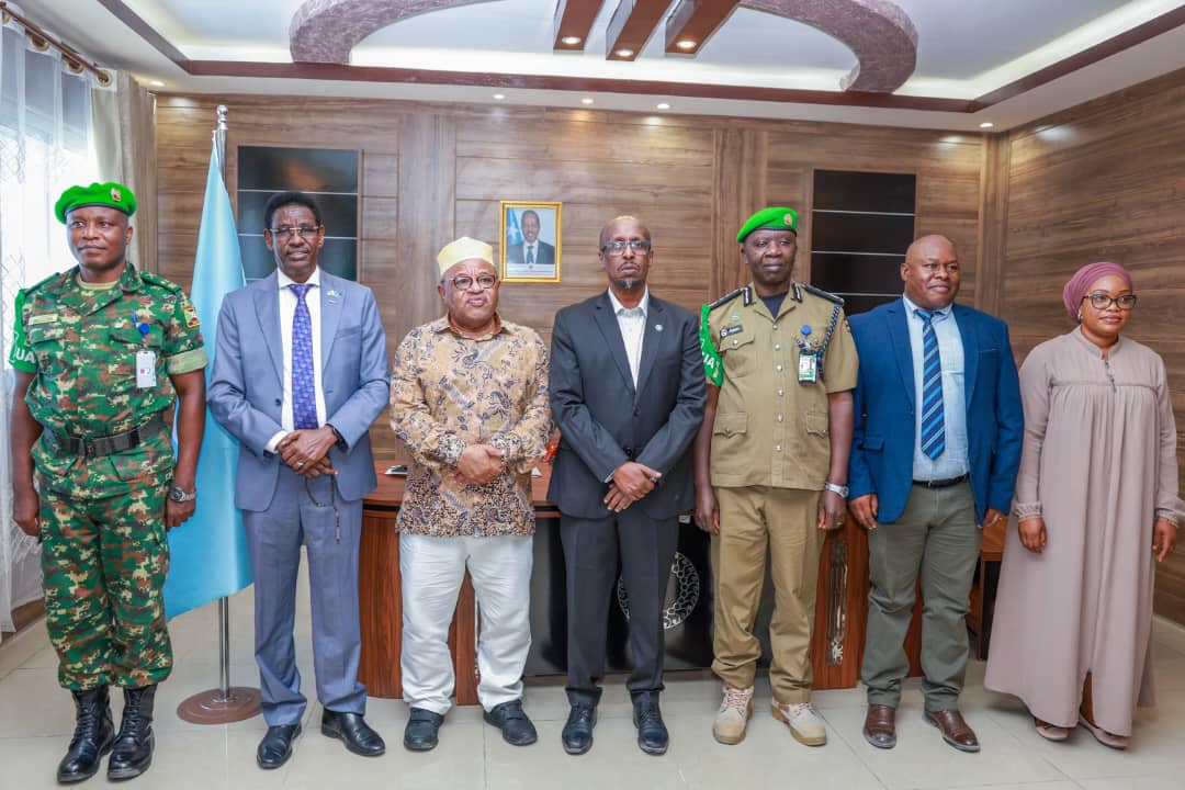 Wasiirka Amniga Somaliya, Cabdullaahi Sheekh Ismaaciil Fartaag ayaa maanta Xafiiskiisa Magaalada Muqdisho ku qaabilay Wakiilka Midowga Afrika ee dalka ahna Madaxa Ciidanka Nabad Ilaalinta ee Hawlgalka ATMIS, Danjire Mohamed El-Amine Souef iyo Saraakiil kale oo ka tirsan Taliska ATMIS.