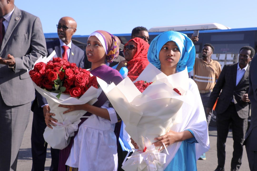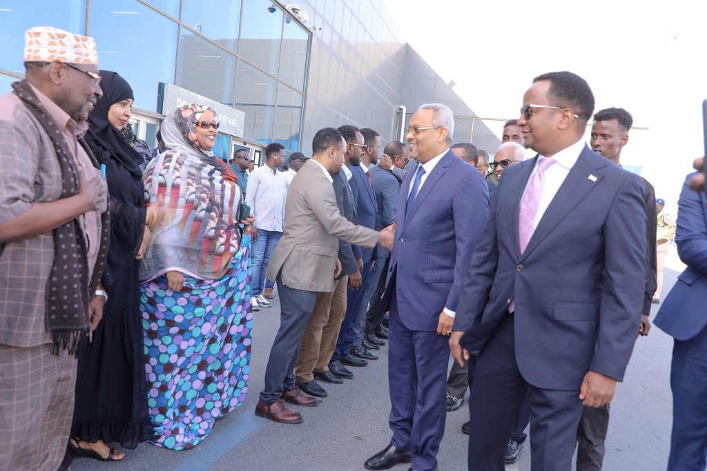 Wasiirka Arrimaha Dibadda Somaliya, Cabdisalaan Cabdi Cali iyo masuuliyiin kale ayaa wafdiga Wasiirka Arrimaha Dibadda Jabuuti ku soo dhaweeyay Garoonka Diyaaradaha Aadan Cadde.