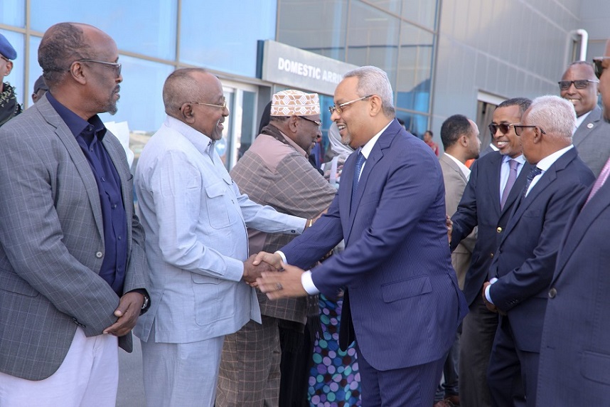 Wasiirka Arrimaha Dibadda Jabuuti, Cabdiqaadir Xuseen Cumar iyo wafdi uu hoggaaminayo ayaa gelinkii dambe ee maanta soo gaaray Magaalada Muqdisho.