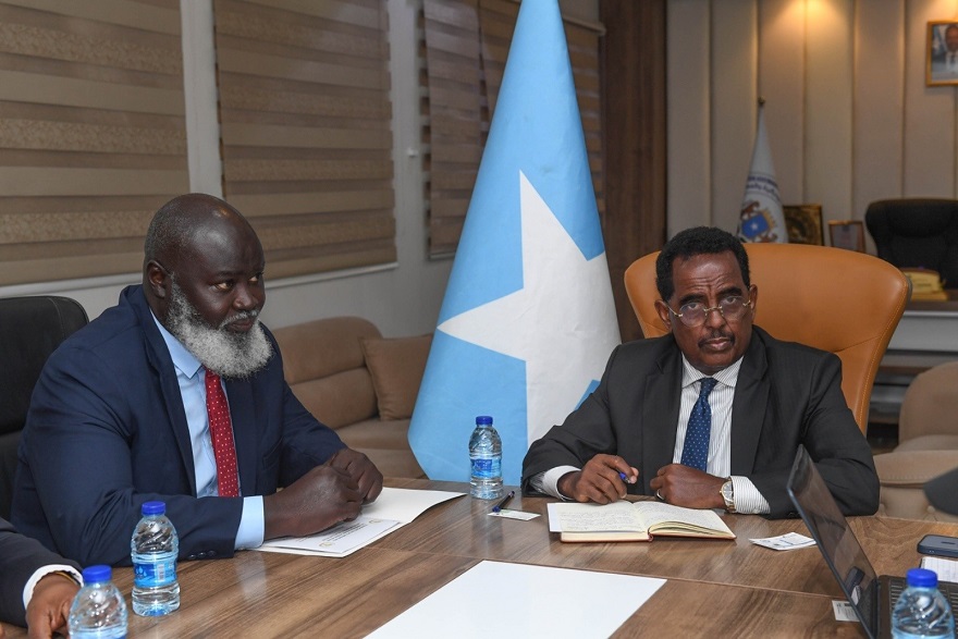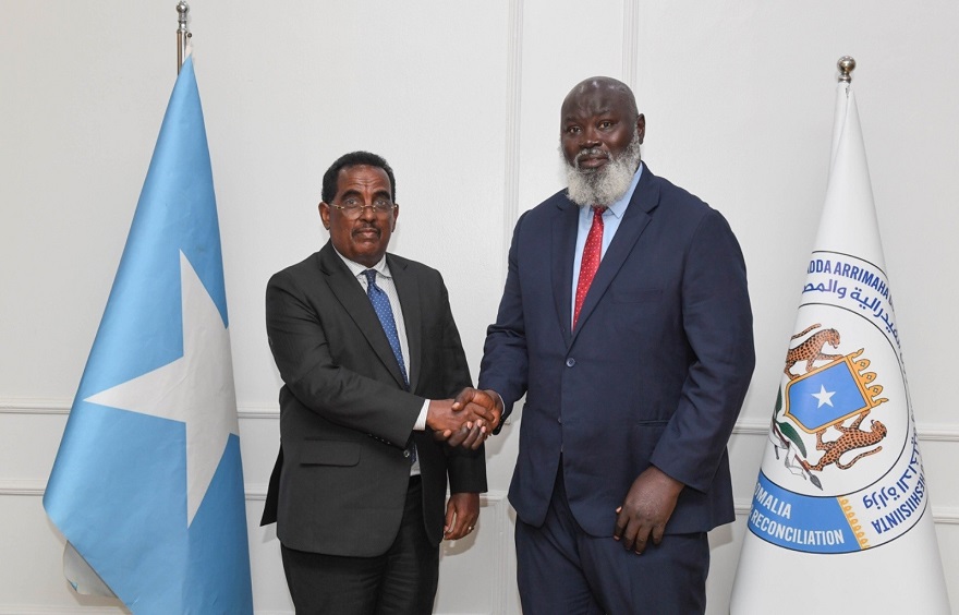 Wasiirka Arrimaha Gudaha Somaliya, Cali Yuusuf Cali (Cali Xoosh) ayaa maanta Magaalada Muqdisho kula kulmay Wakiilka Midowga Afrika ee Somaliya ahna Madaxa Taageerada & Xasillinta ee Hawlgalka AUSSOM, Danjire El Hadji Ibrahima Diene.