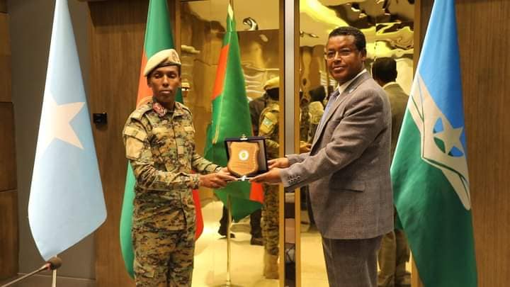Wasiirka Gaashaandhigga Somaliya, Cabdulqaadir Maxamed Nuur (Jaamac), oo uu wehliyo Taliyaha Ciidanka Xoogga Dalka, General Odawaa Yuusuf Raage ayaa maanta Xarunta Wasaaradda Gaashaandhigga ee Magaalada Muqdisho ku qaabilay wafdi ka socda Ururka Ciidamada Heeganka Bariga Afrika ee East African Standby Forces (EASF).