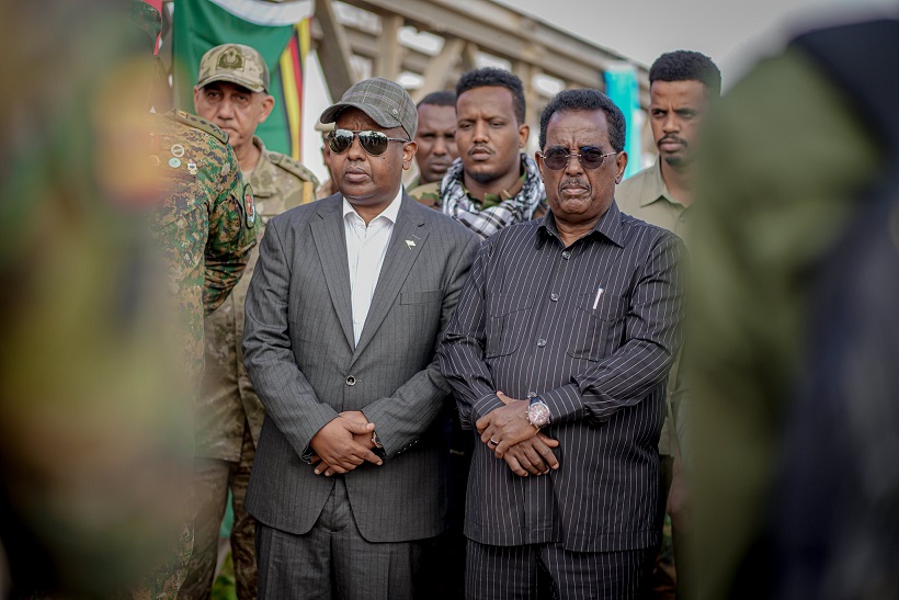 Masuuliyiintan oo la socday diyaarad helicopter ah ayaa halkaasi kaga qaybgalay munaasabad xarigga looga jarayay Buundada Sabiid & Caanoole, ka dib markii dib u dhis lagu sameeyay.