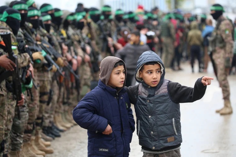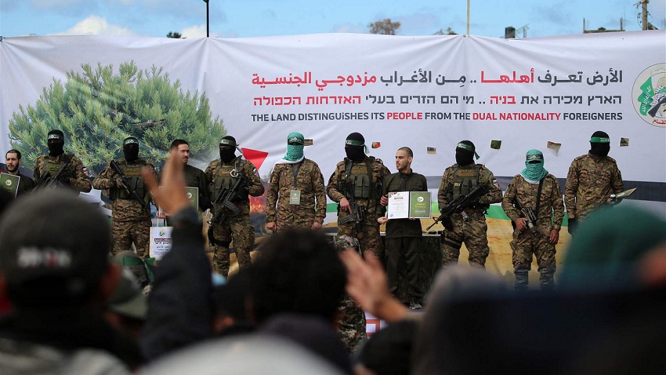 Xoogaga Xamaas ayaa saddex maxbuus ku soo bandhigay xerada qaxootiga Nuseirat ee bartamaha Marinka Gaza, ka hor inta aysan ku wareejin Shaqaalaha Laanqeyrta Cas.