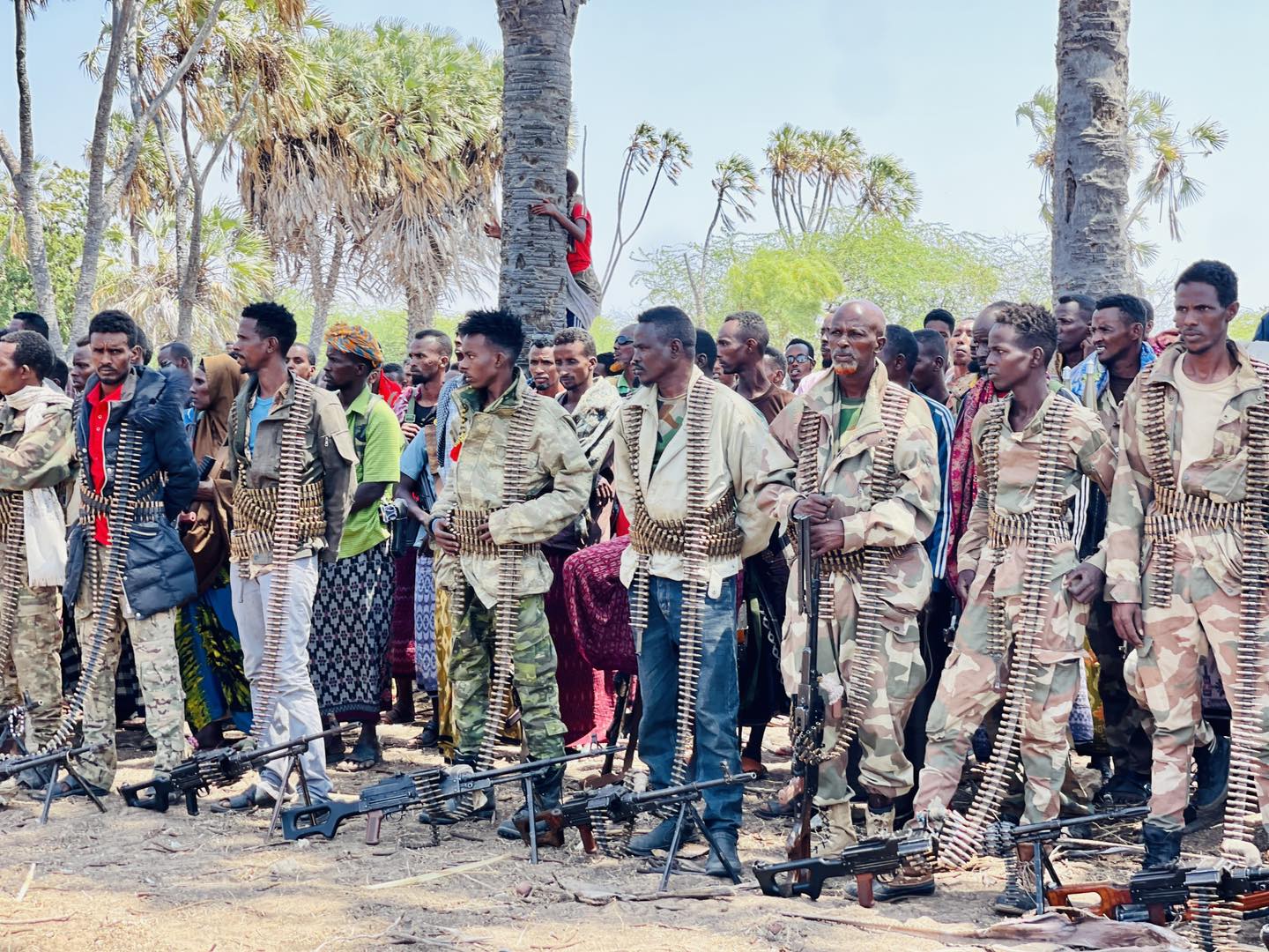 Xoogagan oo ku hubeysan hubka noocyadiisa kala duwan iyo gaadiidka dagaalka ayaa ah dadka deegaanka ee loo abaabulay in dagaalka gacan ka gaystaan.